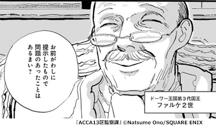 2013〜2016年に『月刊ビッグガンガン』(スクウェア・エニックス)で連載されていた『ACCA13区監察課』。作者は『リストランテ・パラディーゾ』(太田出版)、『さらい屋五葉』(小学館)、『ふたがしら』(小学館)など、メディア化作品も多数のオノ・ナツメ先生です。