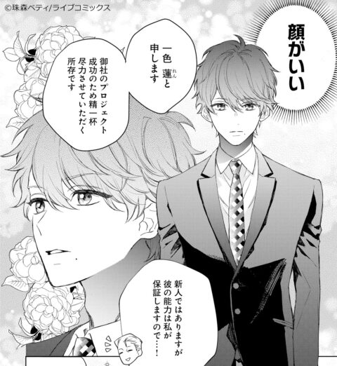 その新規事業の取引先として和花が出会うのが、お待たせしました!作品タイトルにいる「一色蓮」です!神崎部長に続きイケメン高身長で、朱色の髪がかわいい22歳です。