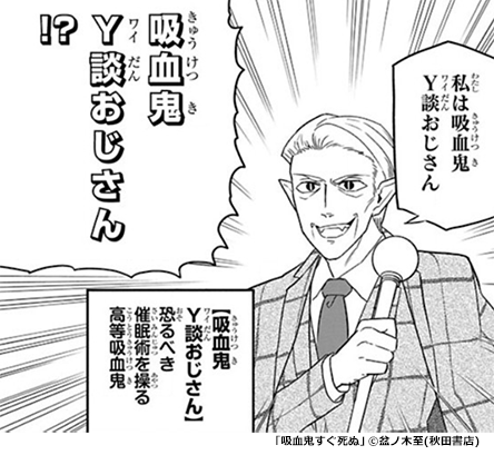 「Y談しか喋れなくする」という恐ろしい催眠術を操る吸血鬼。作中でもトップクラスの強大な催眠術の力をY談にしか使わないというしょうもないおじさんです。