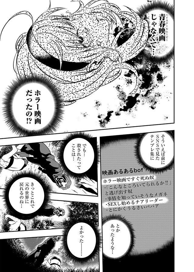 転生したのは青春映画の世界のはずだったのに、そこにはなぜか殺人鬼がいて…!?終わらない殺戮ループのホラーサスペンスが幕を開ける!