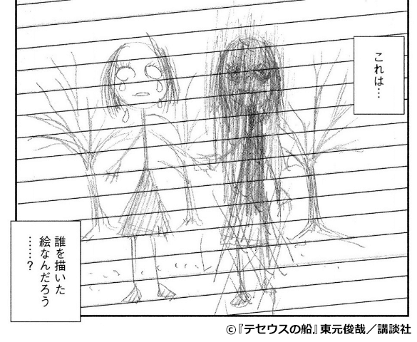 また、田中の家には誰かが残していった不気味な絵が。これと同じタッチの絵が今後も登場し、ストーリーの重要な要素になっていきます。