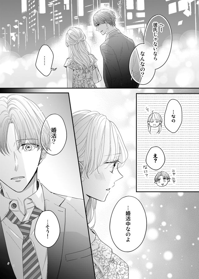 『理想は、優しくて包容力があって、ケンカもしない人!』仕事も充実し、恋愛しなくても特に困っていないと思っていた――藤枝立(ふじえだりつ)・27歳。風邪をこじらせて心が弱り、将来を考えて婚活を決意…! 意気込んで婚活パーティーに参加してみたけど、男性陣とうまく話せないでいると…「よかったら、このあとふたりで飲みませんか?」大人な雰囲気の、高垣(たかがき)さんと意気投合! しかも同じ大学で働いていることが発覚して…誠実そうだし、すっごくいい人かも? 恋の予感に胸躍らせていたら、背後からなんだか聞き覚えのある声が…。なんと、偶然同じ居酒屋に元カレ・和泉(いずみ)が居合わせて!? 「結婚なら、立のこと知り尽くしてる俺としようよ?」彼は昔からいつも調子いいことばっかり言うタイプで…! あたたかくて安心できる新しい恋、ほろ苦いけどずっと忘れられずにいる過去の恋。もう一度、恋をするなら…私はどっちを選ぶ――?