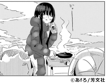 1巻第3話。リンのソロキャンプになでしこが土鍋を持って押しかけたキャンプ場。