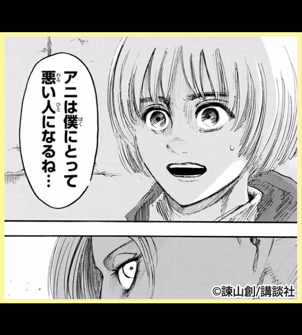本心では同期であるアニの無実を信じていたかったが(読者も信じていたかったはず…)、その期待は裏切られることになる。