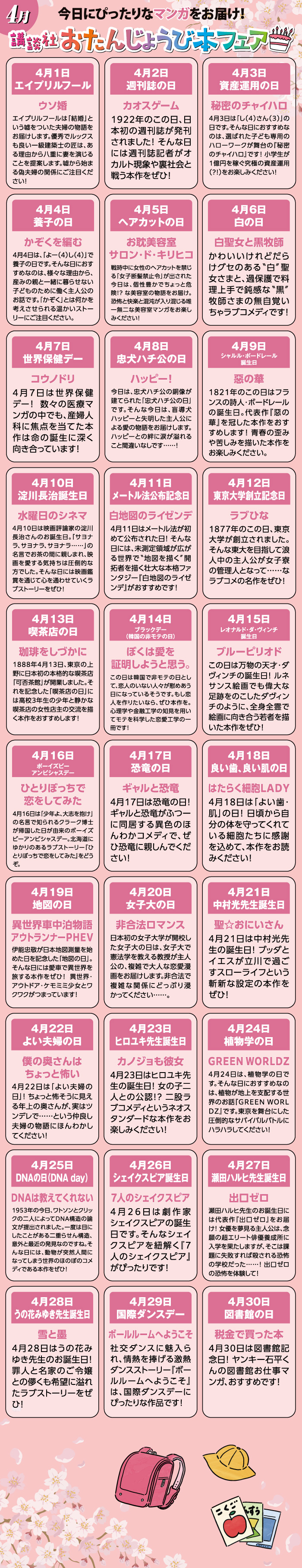 今日にぴったりなマンガをお届け!講談社おたんじょうび本フェア<4月>