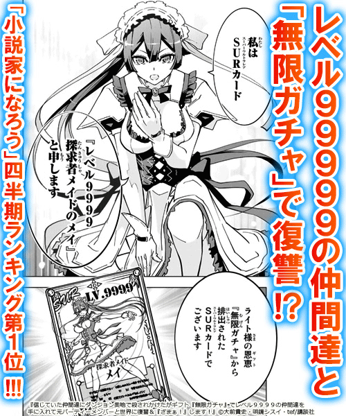 「小説家になろう」四半期ランキング第1位!!!(2020年7月9日時点)仲間に裏切られ、最凶のダンジョン『奈落』の底に突き落とされた少年・ライト。彼に残されたのはゴミだと思われたスキル『無限ガチャ』のみ! 最悪な状況から少年の逆転劇が始まる!!! (※「小説家になろう」は株式会社ヒナプロジェクトの商標登録です) 9つの種族の平等を掲げ結成された冒険者パーティー『種族の集い』。荷物持ちの少年・ライトは、パーティーの仲間達に裏切られ最凶ダンジョン『奈落』の奥で命を狙われる…。絶体絶命の危機、ライトがすがるのは恩恵『無限ガチャ』!!!