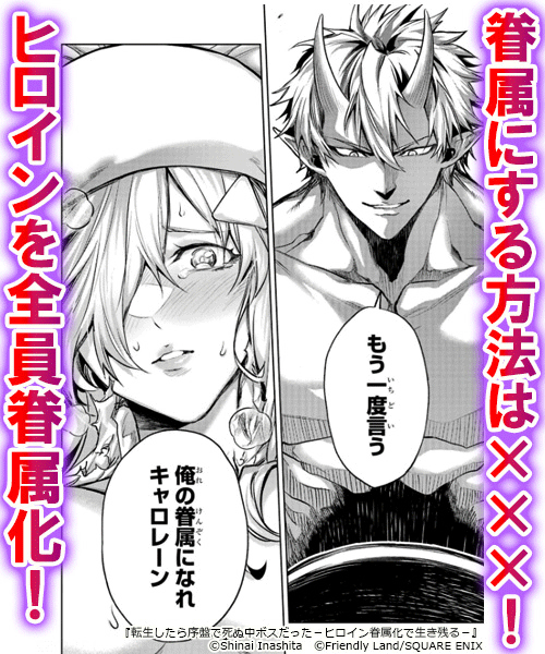 ××して女たちを眷属にせよ…!? 事故に遭って目が覚めたら、ゲームの序盤で死ぬ中ボスに転生!やがて襲ってくるはずの勇者に殺されないために、××して女たちを眷属にして仲間を増やせ!興奮必至の異世界サバイバルファンタジー! (C)2023 Shinai Inashita┴(C)2023 Friendly Land