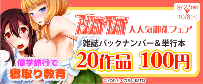 アナラン★雑誌&単行本20作品が100円! ここから先のページには、性的・暴力的に過激な表現のある作品が含まれています。ページを表示しますか? はい いいえ (トップへ) ※「はい」を選択されるとセーフサーチがOFFに変更されます。 セーフサーチとは?