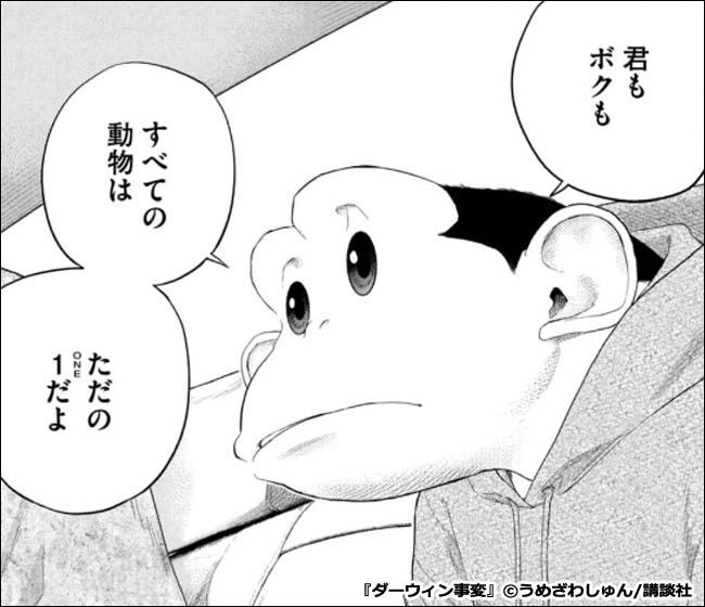 テロ組織「動物解放同盟(ALA)」が生物科学研究所を襲撃した際、妊娠しているメスのチンパンジーが保護された。 彼女から生まれたのは、半分ヒトで半分チンパンジーの「ヒューマンジー」チャーリーだった。 チャーリーは人間の両親のもとで15年育てられ、高校に入学することに。 そこでチャーリーは、頭脳明晰だが「陰キャ」と揶揄されるルーシーと出会う。 「テロ」「炎上」「差別」……ヒトが抱える問題に、「ヒト以外」のチャーリーが、ルーシーとともに向き合うヒューマン&ノン・ヒューマンドラマ。 作品集『パンティストッキングのような空の下』が「このマンガがすごい!」2017(宝島社)のオトコ編第4位にランクインし、話題になった漫画家・うめざわしゅんによる連載作品、開幕!