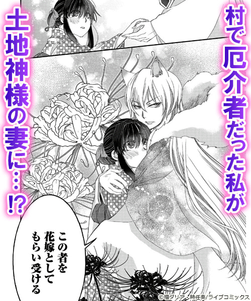 「耐えていればいつか報われるなんて、そんな希望、最初からなかった」 幼少の頃に狐を助けたことから、狐の妖になつかれた娘・かや。しかしそれは、かやのほかには誰にも見えないことから、家族や村人に気味悪がられていた。 干ばつで不作が続くある日、かやの住む村では、土地神・稲荷明神へ祈る雨乞いの儀式を決行することに。村の厄介払いとして生贄に選ばれたかや、燃え盛る火の中に入るよう、うながされたその時、狐妖が呼んだのは……? 私のことを誰も知らない場所で――。 虐げられながらも密かに幸せを夢見ながら耐え忍ぶ娘を、土地神狐の深い愛が神隠す物語。