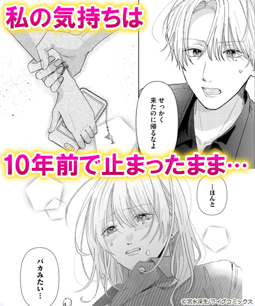 高校生の頃、初恋相手の陽人(はると)とあと一歩で結ばれるという時に、彼と音信不通になってしまった凪(なぎ)。10年が経った今も、その想いを捨てきることができずに悩んでいた。早く忘れたいと思いながら過ごすある日、行方がわからなくなっていた陽人と偶然再会してしまい……。 初恋10年目のアラサーと食えない同級生の青春を追いかける沼きゅんラブストーリー。