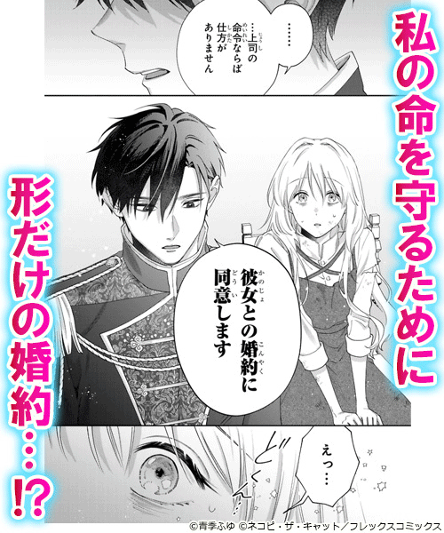 敵国の厳格な公爵騎士×ひたむきな令嬢の国境を越える極上ラブ・ロマンス! 辺境伯令嬢のシャーリーは家族から虐げられる日々。ついには義理の妹に殺されそうになり、敵対している隣国に踏み入ってしまう。「極悪残忍と噂の敵国、容易には帰してもらえない。それに…帰る場所もない」途方に暮れていると敵国の公爵騎士・オリバーとの婚約を提案されて!? (C)青季ふゆ (C)ネコピ・ザ・キャット/フレックスコミックス