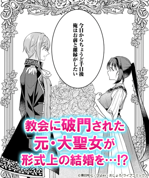 「今日からちょうど千日後、俺はお前と離縁がしたい」 強い癒やしの力を持つ大聖女として、民衆から慕われていたフィーネ。しかしある日、自分をライバル視する後輩聖女・キリアの策略により、烙印を押され、教会を破門されてしまう。さらに、お金に目が眩んだ両親に売られて、異教徒・ナルカ族の辺境伯に嫁ぐことに。 それでも慎ましく頑張ろうと、結婚生活初日を迎えたフィーネだったが……。 破門された元大聖女×無愛想な年下辺境伯の、1000日限りの偽り婚。