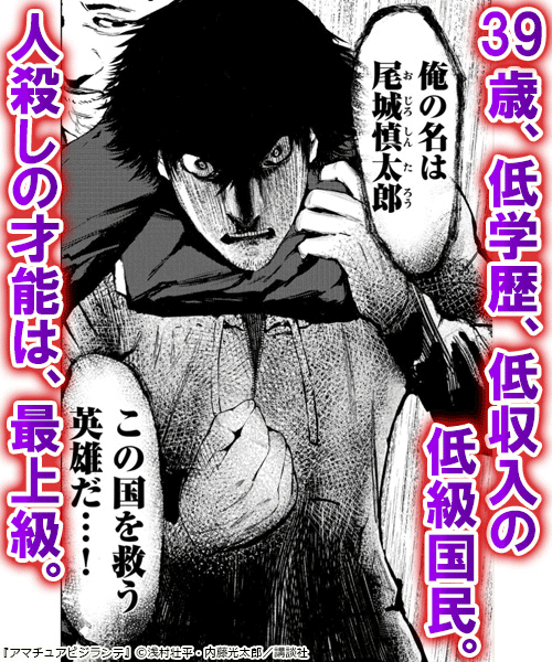 尾城慎太郎39歳。低学歴、低収入、いわゆる低級国民。失い、奪われ続けた男は、社会から断絶し孤独と絶望の果てに、政治家の暗殺を決意した‥‥。瘴気の部屋を満たす殺意が、今、世界を、侵食する――!!
