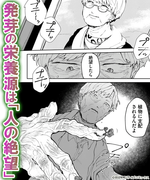 第1話 萌芽 近未来の地球。人類は人口を急激に減らしていた。その主な原因は被植死(アリロイド・クレイ)と呼ばれる現象――すなわち人間の「ある感情」を苗床にし、植物が人を支配してしまうことだった。被植死予防のため再生課職員・草木(くさき)は、独りの老人のもとを訪れる。 気鋭の作家が描くSFサスペンス。衝撃のラストまで残り3話!