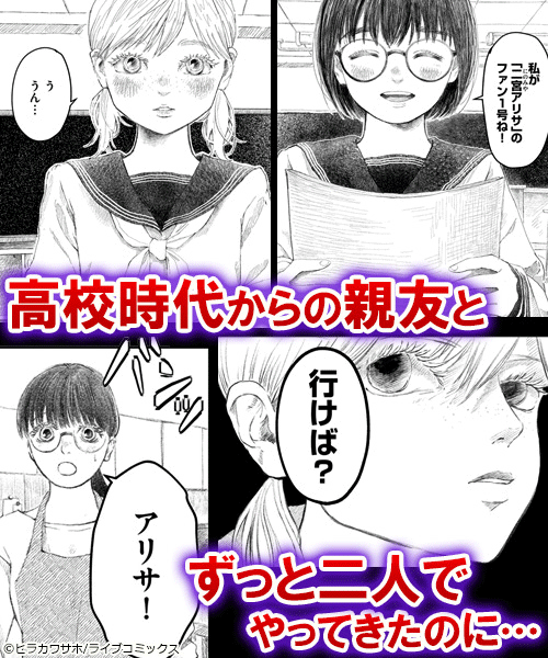 高校の同級生である純子(じゅんこ)とアリサは自作の小説を互いに見せ合う仲。陽キャ集団に目をつけられながらも、二人の世界で過ごしていた。 それから11年、ベストセラー作家になったアリサと暮らす純子。しかし、平穏を脅かす不審な影が彼女たちに近づいていた。 『隣人ガチャ』のヒラカワサホが送る、新たな”ガチャ”! あなたのともだちは、SSレアですか? それとも――。