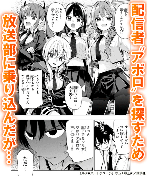 「深夜ひとり、ベッドの上、キミの声だけが救いだった。もう一度キミと話したい。言いたいことがあるんだ」。高校2年生の山吹有栖は、「アポロ」という名の、顔も本名も知らないラジオ配信者の少女を探していた。だがある日、有栖は進学先の高校の放送部にアポロの手がかりを得る。そこにいたのは「声に関わる仕事に就く」夢を描く美少女が…4人!! アポロは誰? 4人の夢の行方は?かわいくも懸命なサクセスラブコメ、ここに開演!! 高校2年生の山吹有栖は、「アポロ」という名の、顔も本名も知らないラジオ配信者の少女を探していた。だがある日、有栖は進学先の高校の放送部にアポロの手がかりを得る。そこにいたのは「声に関わる仕事に就く」夢を描く美少女が…4人!! 山吹はアポロの正体を掴むため、4人それぞれの夢を叶えることを誓う!! アポロは誰? 4人の夢の行方は? かわいくも懸命なサクセスラブコメ、ここに開演!!