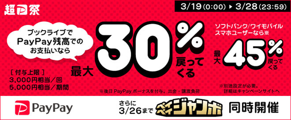 ブックライブでは3月19日(金)から3月28日(日)まで、超PayPay祭の