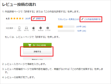1.作品の面白さを伝えてポイントをもらえる「レビュー」