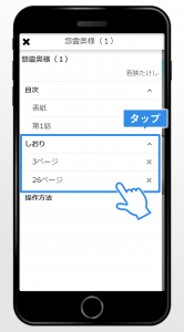 つけた 「しおり」 はビューアメニュー一覧に表示され、すぐにページジャンプできます!