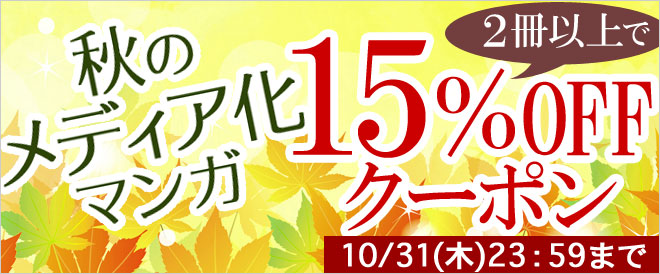 2019年秋、メディア化されているマンガが2冊以上で15%OFFになるクーポン配布中!