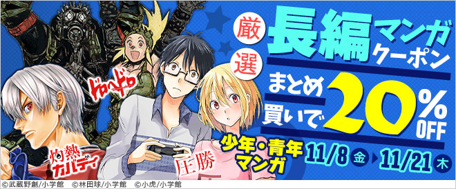 「小学館漫フェス2019秋クーポン」を使うと、小学館のマンガが2冊以上で15%OFF!