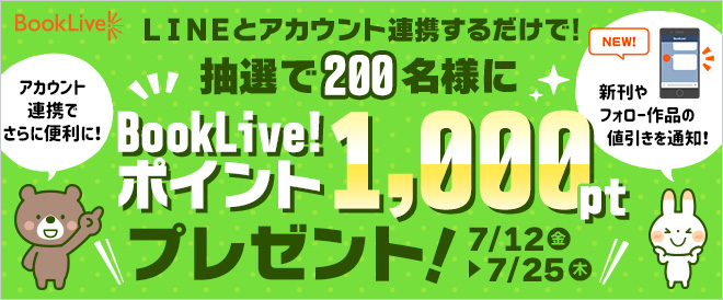 BookLive!アカウントとLINEアカウント連携されたお客様、抽選で200名様にBookLive!ポイント1,000ptプレゼント!